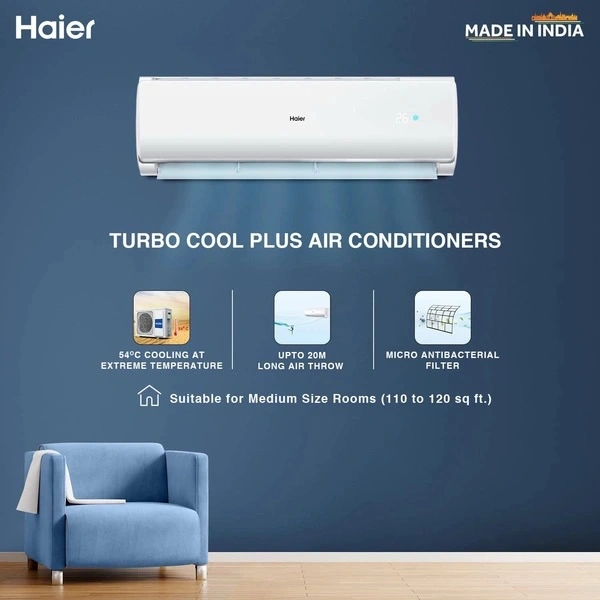- Split AC with Non Inverter Compressor : Turbo cool plus | 54 Degree cooling at extreme temperature | Up to 20 meter Airflow. Star rating as per new guidelines, valid till year 2024