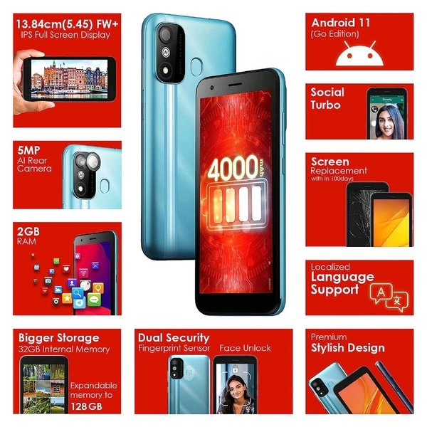 | Primary Camera Features : | 5MP AI Camera, Camera Feature: Portrait Mode, AI Beauty Mode, HDR Mode, Pro Mode, Pano Mode, Low Light Mode, Short Video |