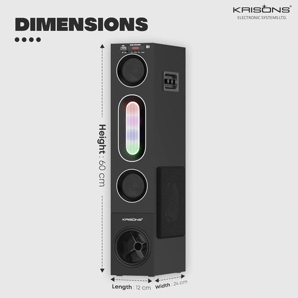 Krisons Cloudbuster Tallboy Tower Speaker, Multimedia Home Theatre, Floor Standing Speaker, RGB Lights, with Bluetooth, FM, USB, AUX Connectivity