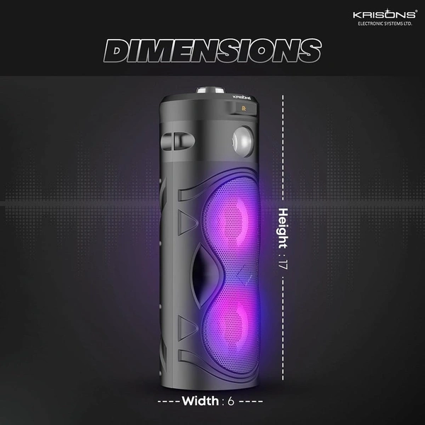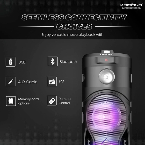 - Long-Lasting Battery: With up to 5 hours of battery backup, the Krisons Cylender 111 ensures your music never stops, keeping the party alive for hours on end.