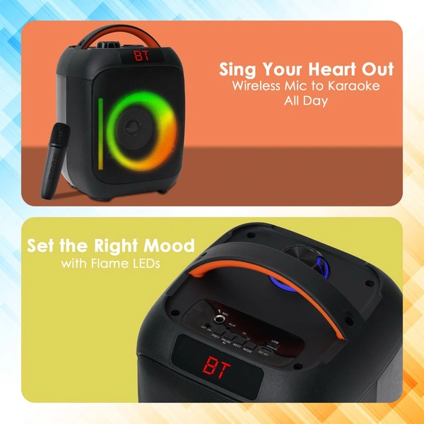 Krisons Krx-Boom Double Woofer 35W Multi-Media Bluetooth Party Speaker with Wireless Mic for Karaoke,2400 MAH Battery, Digital Display,RGB Lights, USB, SD Card, FM Radio,Auto TWS Function
