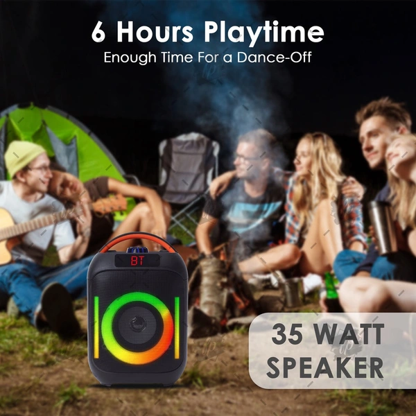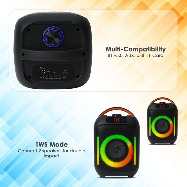 Krisons Krx-Boom Double Woofer 35W Multi-Media Bluetooth Party Speaker with Wired Mic for Karaoke,2400 MAH Battery, Digital Display,RGB Lights, USB, SD Card, FM Radio,Auto TWS Function