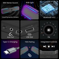 Krisons Gaming Soundbar, featuring stunning RGB LED lighting effects that create an immersive atmosphere. This sleek black soundbar, measuring 38x7.9x5.59 cm, is perfectly sized for desktop setups and delivers impressive audio performance. The modern design incorporates a premium mesh grille and dynamic LED lighting strips that transition through vibrant colours, adding a spectacular visual element to your gaming station. The soundbar offers convenient controls and delivers clear, balanced sound output ideal for gaming, music, and video content. Its compact form factor makes it an excellent space-saving solution compared to traditional speaker setups, while still providing room-filling sound. The versatile design complements any gaming setup or workspace, with the RGB lighting adding a touch of personalisation to your environment. Built specifically for desktop use, this computer speaker combines style and functionality in one sophisticated package.