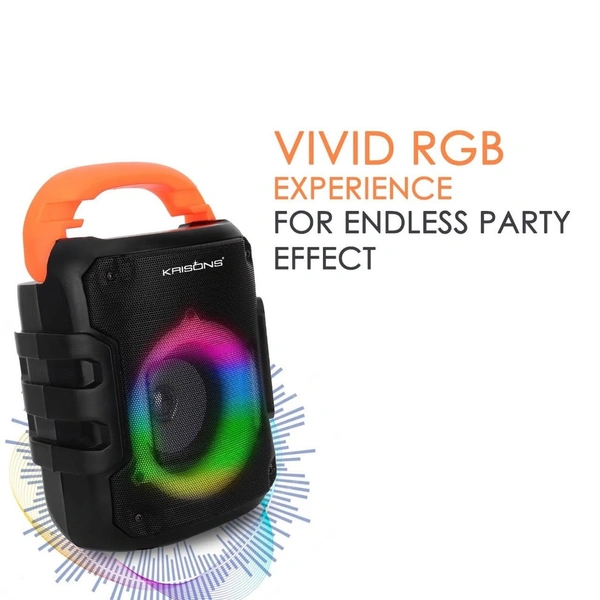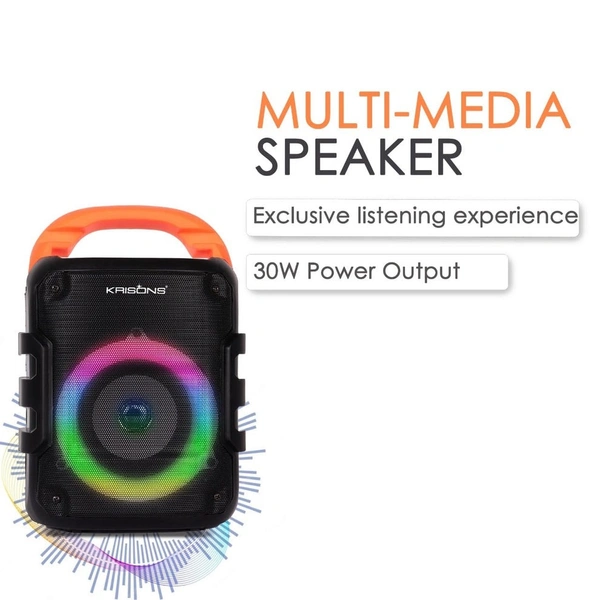 Krisons Sunshine 4" Woofer 35 W Multi-Media Bluetooth Party Speaker with Wired Mic for Karaoke, Digital Display,RGB Lights, USB, SD Card and FM Radio