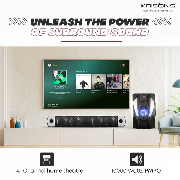 Krisons Superstar 4.1 Channel Home Theatre with Subwoofer Cum Soundbar, Smart Interlocking Design, Multiple Connectivity, 4x3 Speaker & 5.25" Woofer, Bluetooth Music System with Wireless Mic (Black)