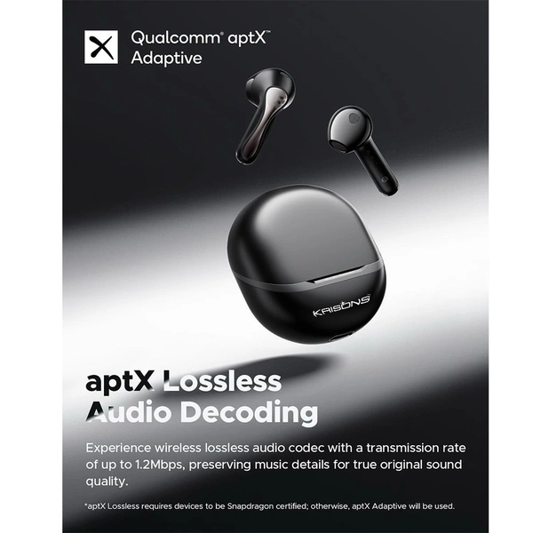 Krisons TWS-002 Wireless Earbuds, Black, True Wireless Stereo, Portable Charging Case