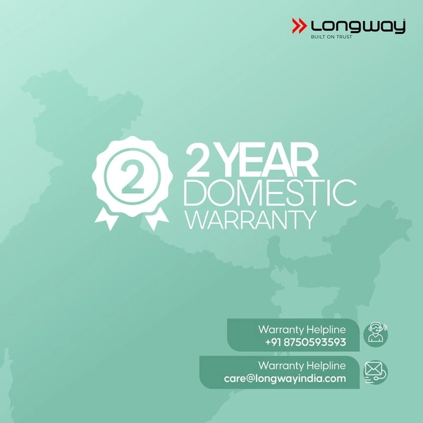 - Warranty Period : 2 Years Limited Domestic Brand Warranty. Enjoy the hassle free warranty by Longway on your product.
