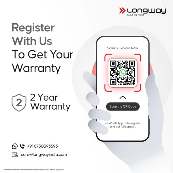 Service Type : For warranty claims or any product related issues please email at care@longwayindia.com or call +91 87 50593593.