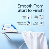 - Product Features : 6 Multi-Heat Setting based on the Cloth Fabric. Auto Cut-off & Safety functions comprising crease free experience. Shockproof Handle, Pilot Lamp, Swivel Cord.