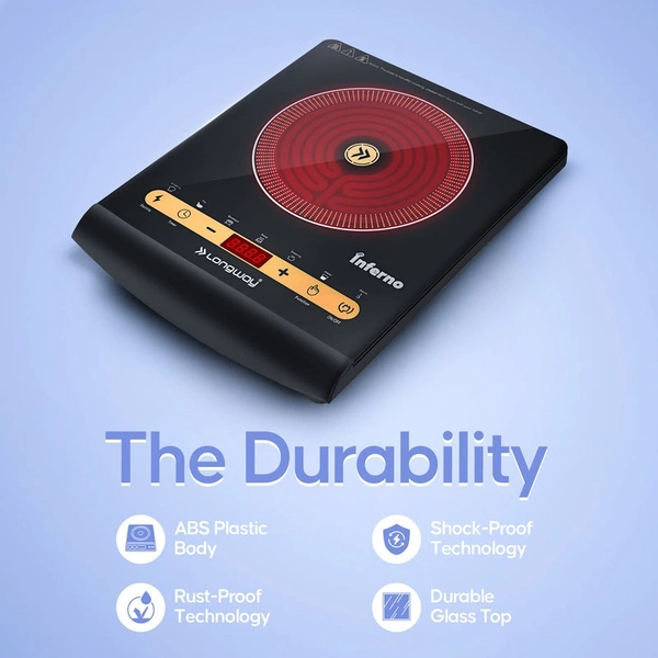 Longway Inferno ICT 2000 W Infra-Red Induction Cooktop For All Type Of Utensils (Black, Touch Control)