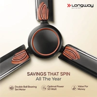 - Super Energy Efficient Motor : Elegant Design Comprises the energy efficient technology from Longway. Motor comes with ZZ High Carbon Steel Double ball bearing set, Gloss Finish with superb performance.