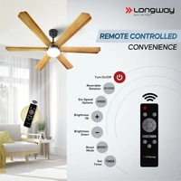 5. EASY MAINTENANCE & WARRANTY PERIOD: Designed for durability, the Longway Luminair’s corrosion-resistant blades are simple to clean, ensuring long-lasting performance with minimal effort. The Longway Luminair ceiling fan comes with a 5 Years Limited Domestic Brand Warranty. Enjoy the hassle free warranty by Longway on your product.