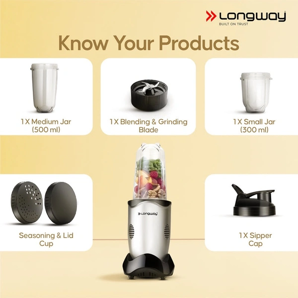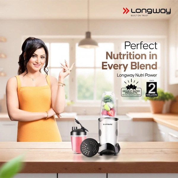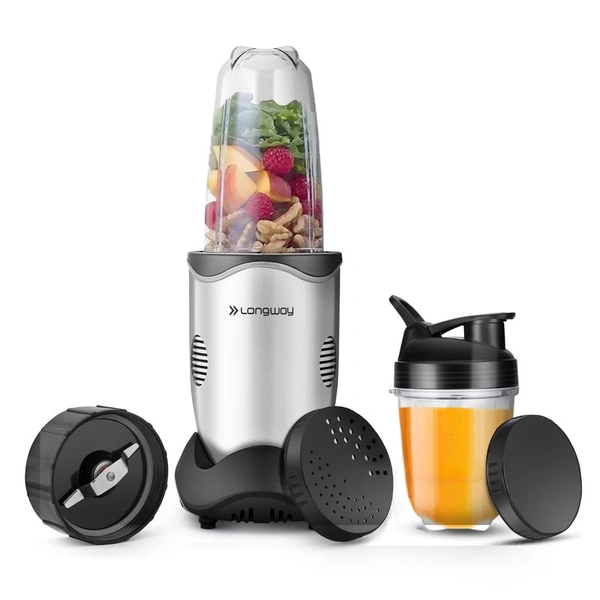 Longway Nutri Power 600 W Bullet Mixer Grinder & Smoothie Maker With Stainless Steel Blades & ABS Plastic Body | 22000 RPM | 3 Years Warranty (2 Jars, Silver)