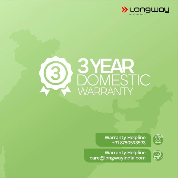 Warranty Period : 3 Years Limited Domestic Brand Warranty. Enjoy the hassle free warranty by Longway on your product.