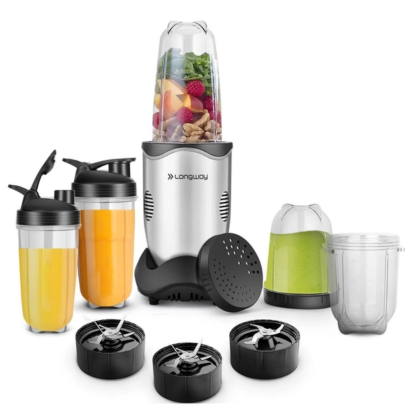 Longway Nutri Power 600 W Bullet Mixer Grinder & Smoothie Maker With Stainless Steel Blades & ABS Plastic Body | 22000 RPM | 3 Years Warranty (5 Jars, Silver)