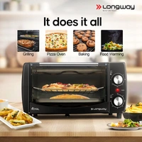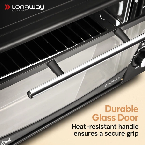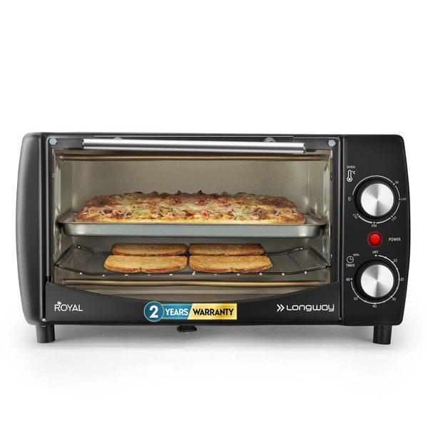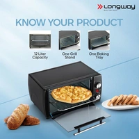 Longway Royal OTG 12 Ltr Oven Toaster Griller With Heating Modes | Temperature Timer Control For Baking Pizza, Cake, Grilling Chicken & Toasting Bread| (1000 W, Black)