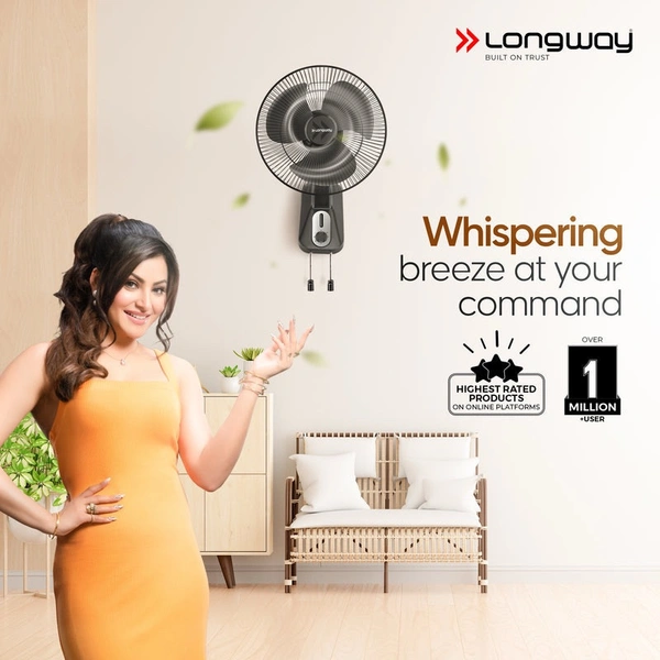Longway Speedy 12 1 Star 300 Mm Energy Saving 3 Blade Wall Fan (Black, Pack Of 1)