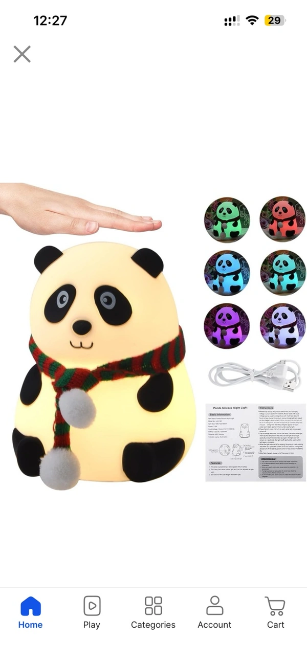 Cute Panda Silicon USB Rechargeable Light Night Lamp (13.2 cm, Multicolor)