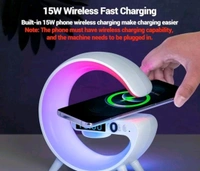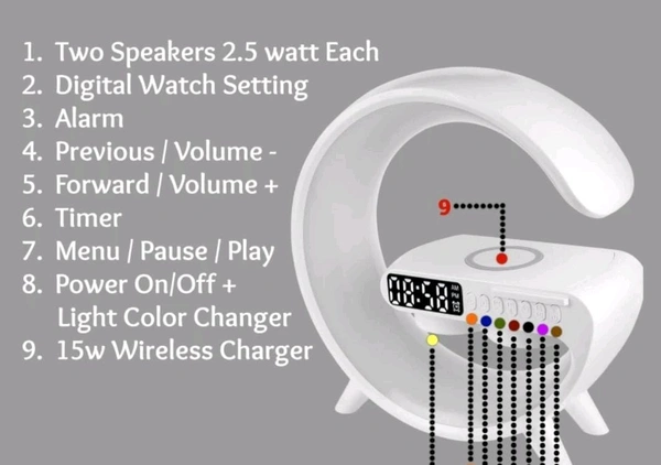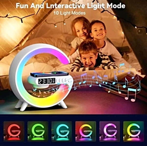 G Shape Table Lamp RGB Bluetooth Speaker with 15w Wireless Charger, Digital Clock 5 W Bluetooth Party Speaker (White, 2.0 Channel)
