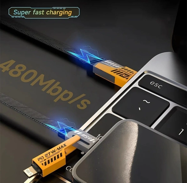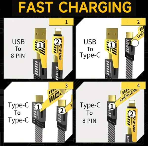 Type C 1 m Braided 4 in 1 65W Fast Charging Cable Compatible for-iPhone & Android with MFI Certified (1 Meter) (Compatible with Apple, Android, Compatible With Apple & Android, Black, One Cable, One Cable)