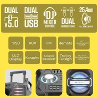 | Package Contents: | Speaker - 1 U, Power Adapter - 1 U, Remote - 1 U, Wireless Mic - 2 U, QR Code Guide - 1 U, Input cable - 1 U |