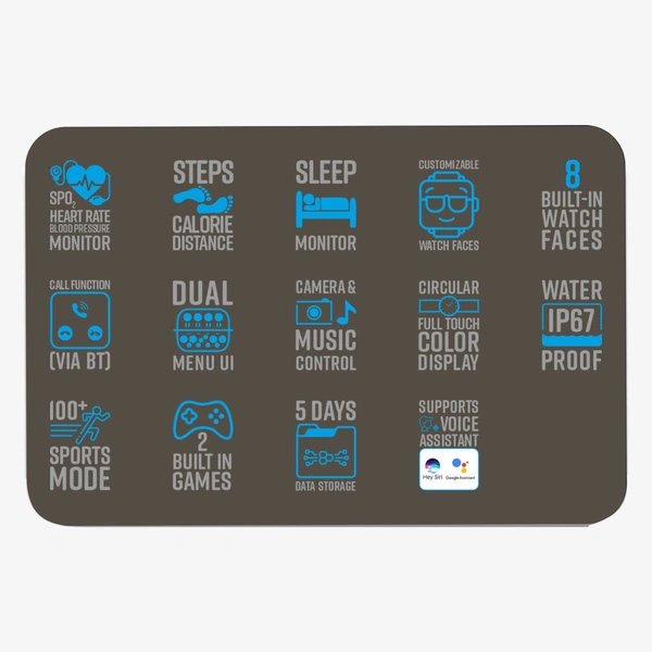 Get fit with style, the Circle smart watch is here, with its beautiful design and circular 3.5cms(1.39”) screen and loads of features ! It will help you achieve your fitness goals and do more ! It also comes with a calling feature, answer calls on your wrist, get SMS and other app notifications. Equipped with fitness and health monitoring features. |