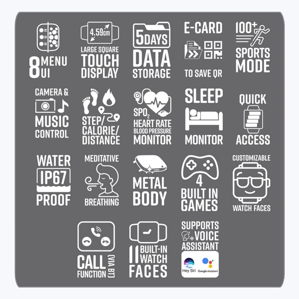 The smart watch features 8 menu UI with different navigation menus that help you get apps at a glance. |