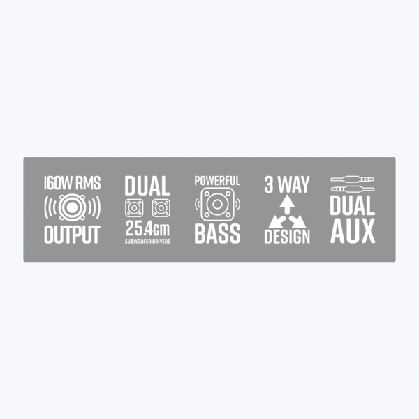 | Output Power (RMS) | 160W (80W + 80W) | |
