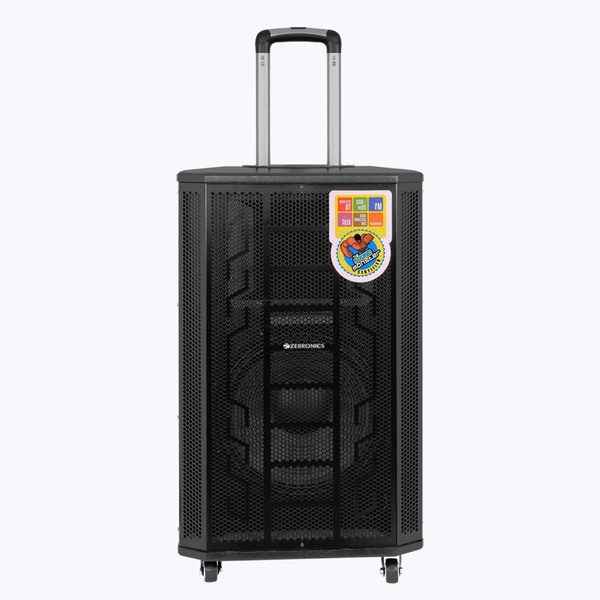 Take your music anywhere with the new Zebronics trolley DJ speaker “Metal”. It's a stylish trolley speaker with retractable handle on top and caster wheels for easy movement. The powerful drivers in the speaker give crisp and loud audio with thundering bass. |