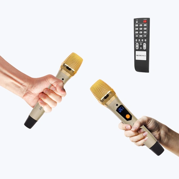 - Dual UHF Wireless microphone with metal body for speaker output and mic