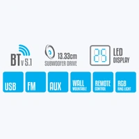 | Package Contents: | Subwoofer - 1 U, Satellite - 5 U, Remote - 1 U, Input cable - 1 U, FM cable - 1 U, QR Code guide - 1 U |