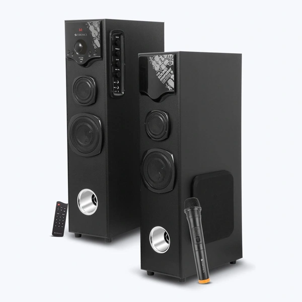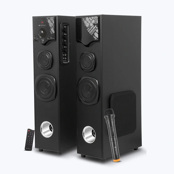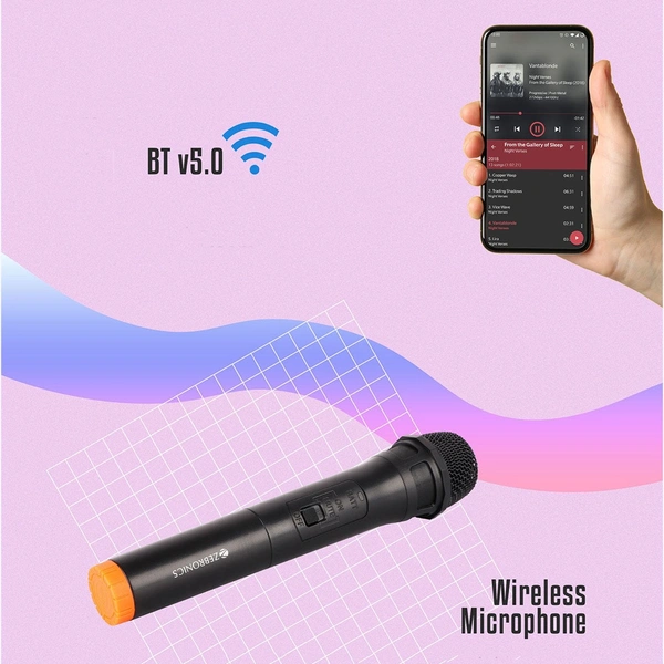Enjoy the karaoke experience minus the wires with ZEB-BT808RUCF tower speaker that comes with a wireless microphone. |