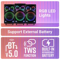 | BT v5.0 | USB | mSD | FM | AUX IN | MIC IN x 2 | GUITAR IN x 2 | |