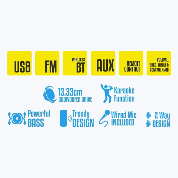 | Package Contents: | Speaker - 1 U, Remote - 1 U, Input Cable - 1U, Wired Microphone - 1 U, QR Code Guide - 1 U |