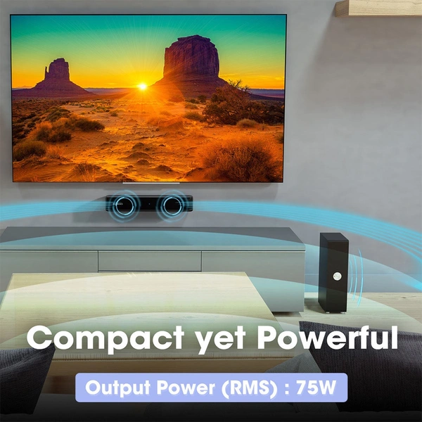 Enjoy the crisp and clear audio with a super compact soundbar with a powerful dual-driver setup in such a compact design, that takes your audio experience a notch above. |