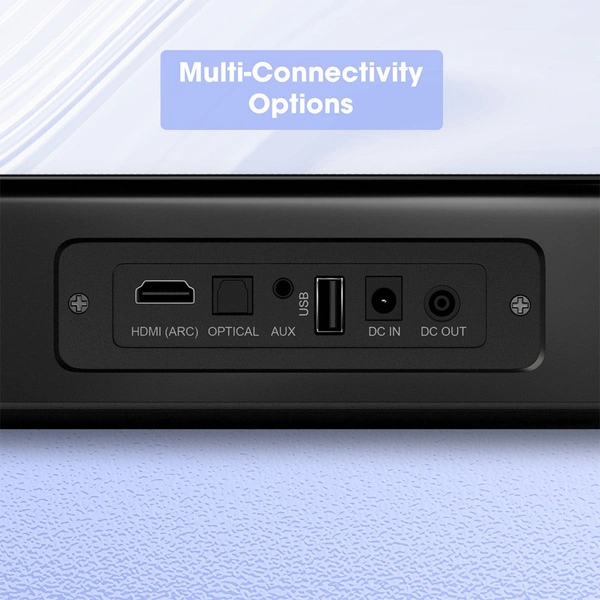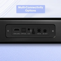 The soundbar comes with multi-connectivity options like you can connect wirelessly via BT. The soundbar also supports connectivity options like HDMI(ARC) and Optical for your TV, DTH, Gaming console etc. It can also play songs from a USB pen drive. The aux port can be used to connect devices like laptops. |