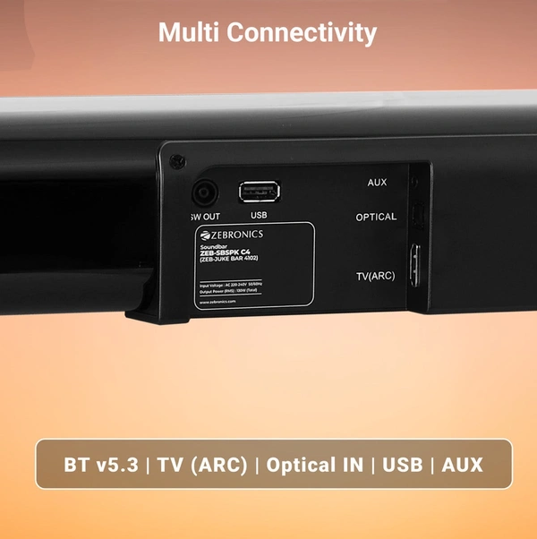 - BT v5.3 | HDMI (ARC) | Optical IN | USB | AUX