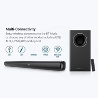 | Enjoy wireless streaming via the BT Mode or choose any of other modes including USB, AUX, HDMI(ARC) and optical. |