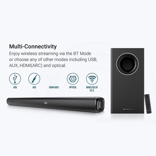 Watch and enjoy your favorite shows and movies in simulated surround sound with multi driver sound bar and subwoofer. Multi driver setup ensures sound flowing all around you and gives an immersive audio experience. |