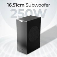 | You can hear the depth of the music thanks to the robust dedicated subwoofer comes with the soundbar, which has a 16.51 cm driver for a booming experience. The subwoofer produces the bass, which enhances the low-end performance by highlighting the richness and rumble of the music. |