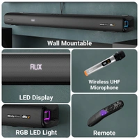 | Package Contents: | Sound Bar - 1 U, Subwoofer - 1 U, Satellite - 2 U, Power cord - 1 U, Remote control - 1 U, Input cable - 1 U, HDMI Cable - 1 U, User Manual - 1 U, Wall mount bracket with fasteners - 1 U, QR Code Guide - 1 U, Power adapter - 1U |