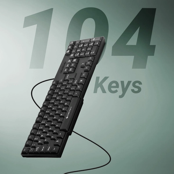 Zebronics K20 is a standard wired USB keyboard with 104 keys . This keyboard comes with a retractable stand with a dedicated rupee key.