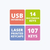 - 104 keys that include 14 multimedia keys