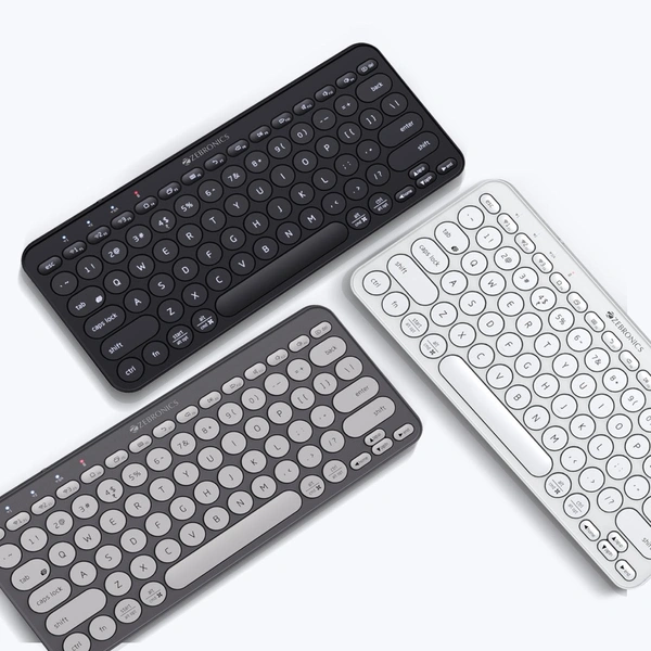 Get a clutter-free desk with the ZEB-K5000MW wireless BT keyboard, featuring an ergonomic design with scissors keys to dampen the typing sound, so it's quieter to type. |