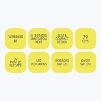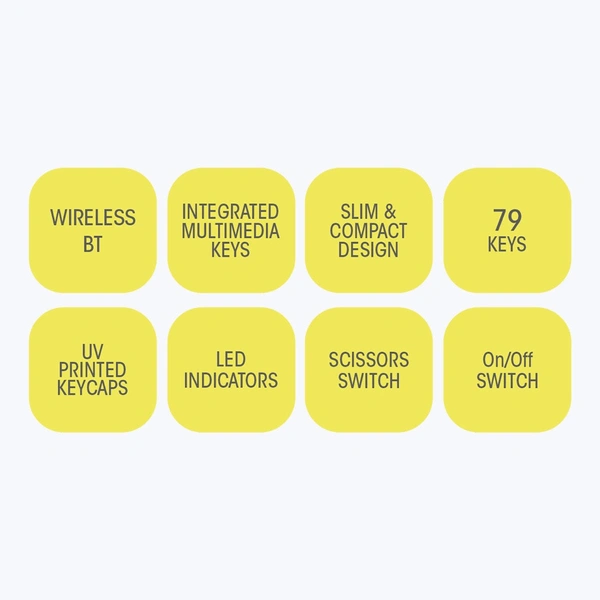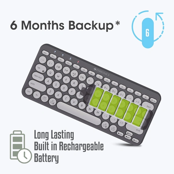 ZEB-K5000MW is a 79 keys wireless BT keyboard, featuring an ergonomic design with scissors keys to dampen the typing sound, so it's quieter to type. It has a type C interface for charging and indicates the charging, full charge, and low battery with the dedicated LED indicator. It comes with 6 months* of backup time depending on the usage of the device. Pair your wireless keyboard to your phone, laptop, or tablet and connect instantly without the hassles of re-pairing individually.