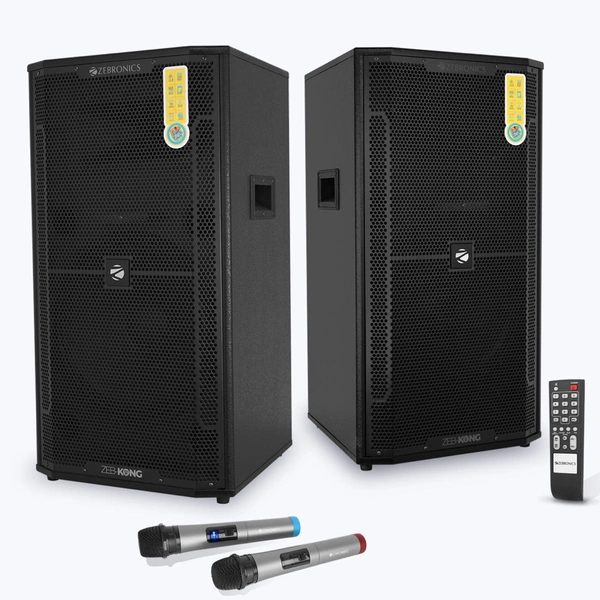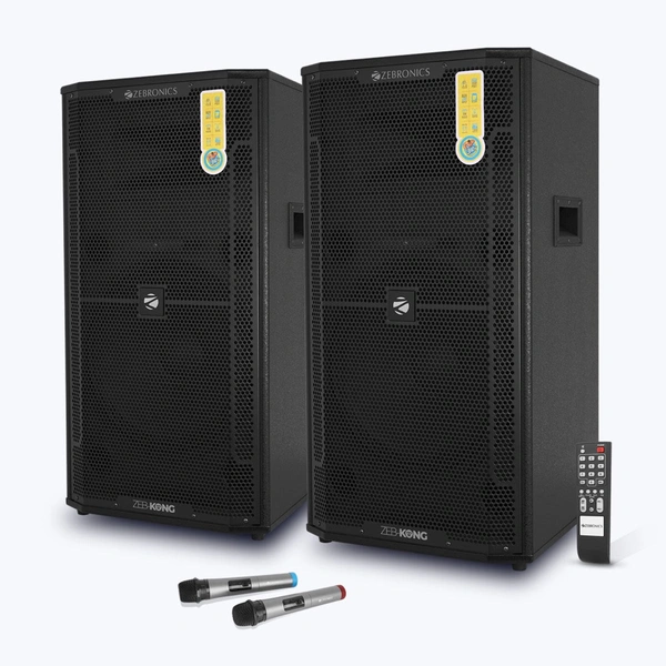 Party like a rockstar with our new ZEB-KONG 2.0 DJ speaker. It comes with powerful sound and dual UHF wireless mics for karaoke. The speaker is equipped with multi connectivity options and comes loaded with features. |