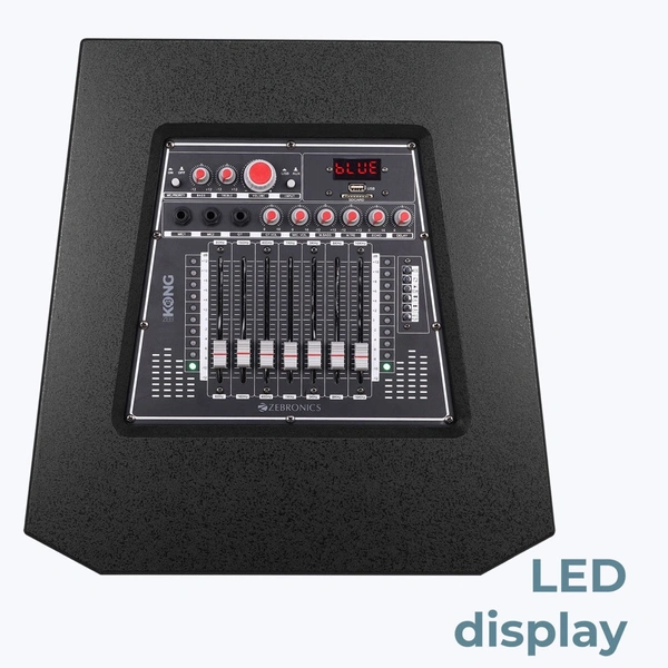 The ZEB-KONG has an LED Display and comes with controls for media/volume, individual controls for bass/treble. It has dedicated controls for mic, guitar inputs. The 7 band equalizer option allows users to customise the audio output. |