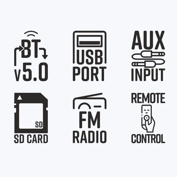 | BT v5.0/ USB / SD / FM / AUX / Mic Input x 2 / Guitar IN x 1 | |