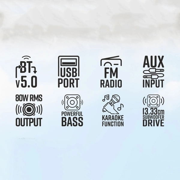 | BT v5.0/USB/ FM /AUX/MIC Input | |