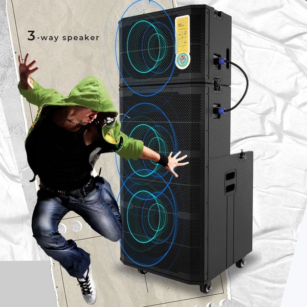| Package Contents: | Trolley DJ Speaker - 1 U, Remote - 1 U, Wireless Mic - 2 U, QR code guide - 1 U, Input cable - 1 U, Power Cord - 1U, Satellite Connector cable - 1 U |